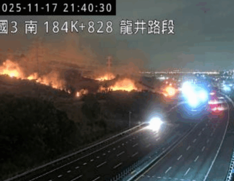 國道3號龍井路段火燒山火勢兇猛。翻攝畫面…