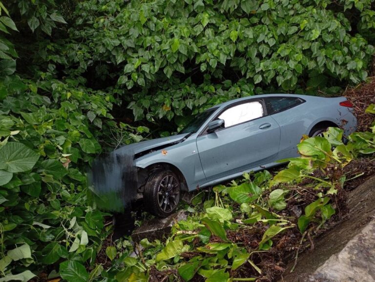 北投BMW男彎道失控翻落邊坡 幸運脫困無傷…