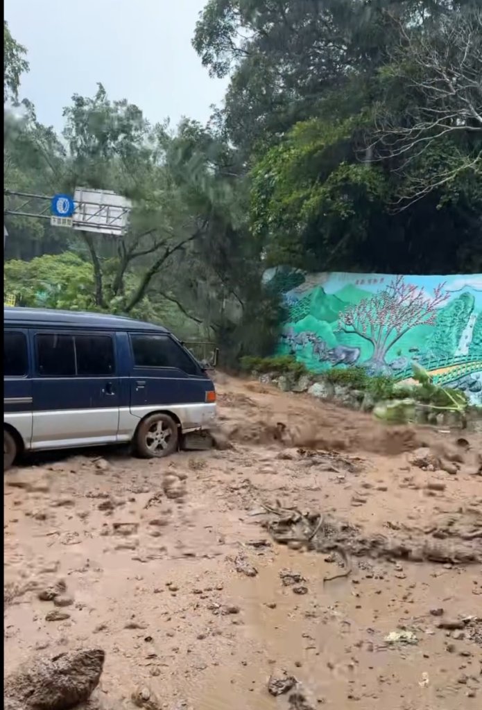 陽明山驚險瞬間!菁山路土石流爆發 廂型…