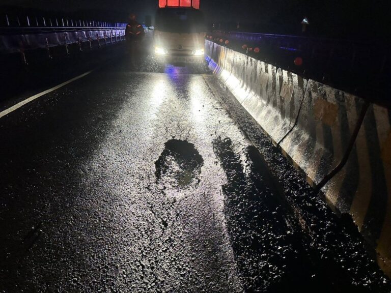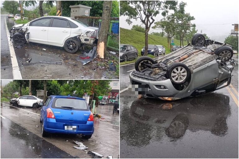 西濱快速道路竹南路出現坑洞害5車爆胎。翻…