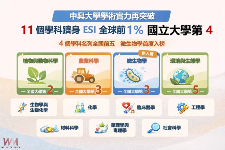 國立中興大學11學科躋身ESI全球前1%、晉國…