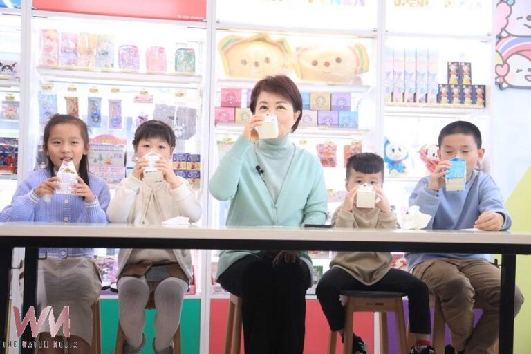 市長盧秀燕與小朋友一起飲用鮮奶。(圖/記…
