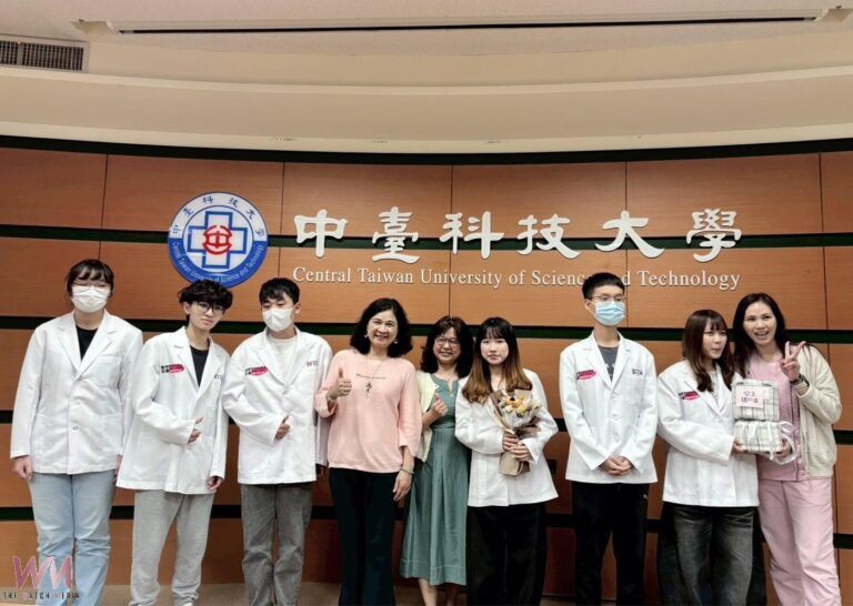 中臺科大陳錦杏校長(左4)與醫放系授袍學生…