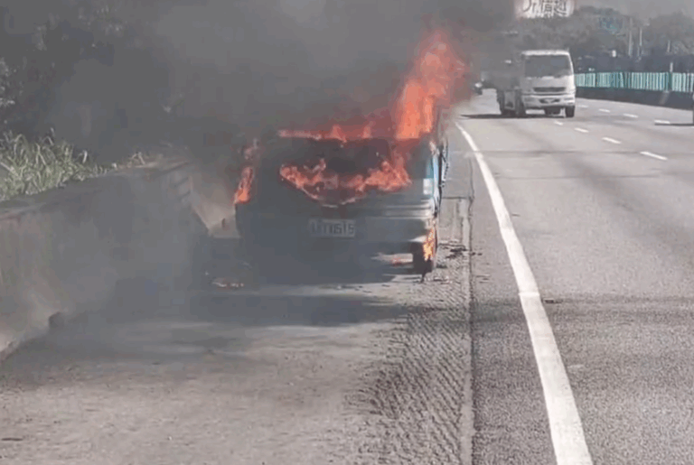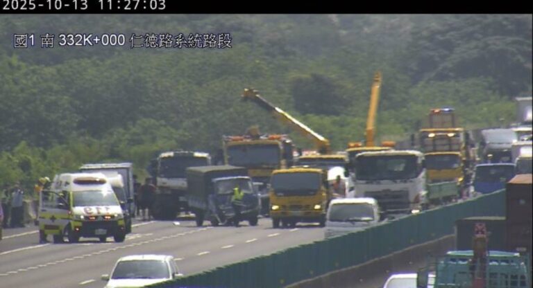 國道1號小貨車起火,火勢猛烈濃煙沖天。翻…