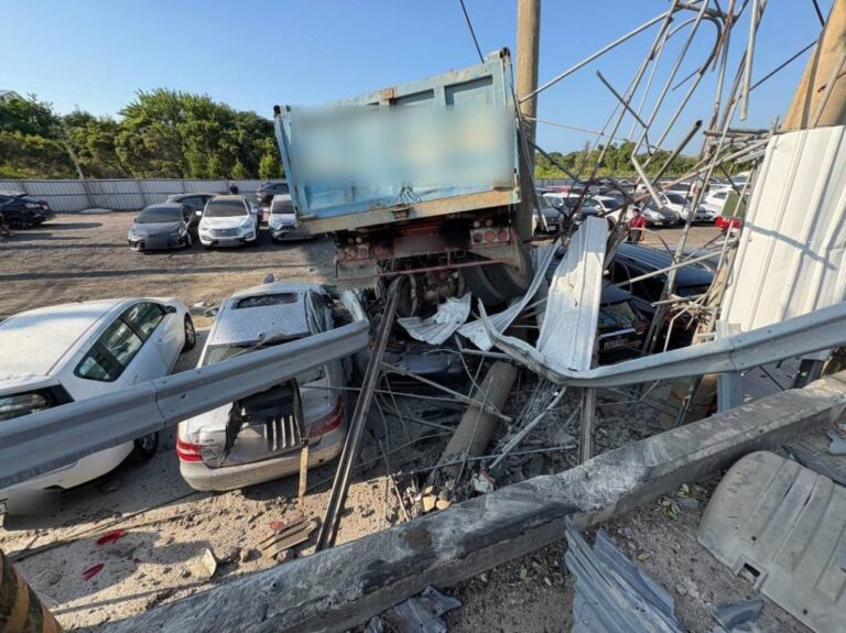 國道2號大貨車撞進匝道口附近停車場,壓毀…