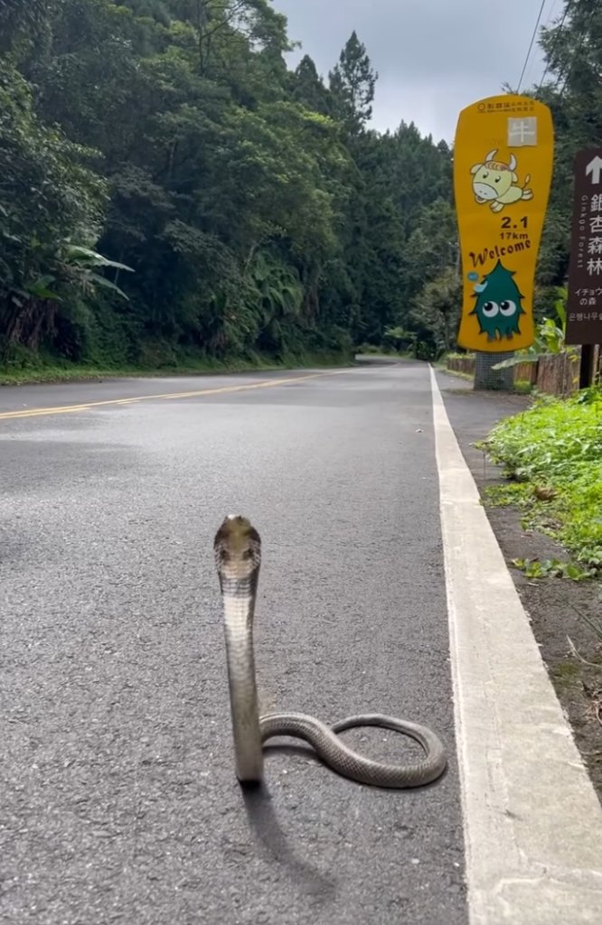 杉林溪驚見眼鏡蛇「抬頭迎賓」!遊客嚇傻…