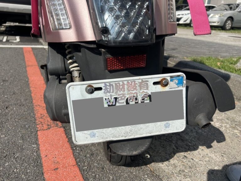 台中一名外送員機車車牌貼上「劫財沒有劫…