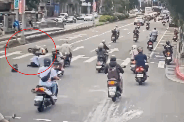 民權東路驚險一摔!女騎士變換車道急煞翻…