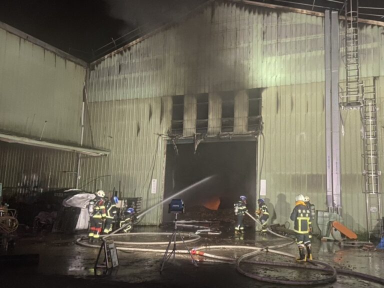 雲林木材工廠鐵皮廠房火警,消防隊員前往…