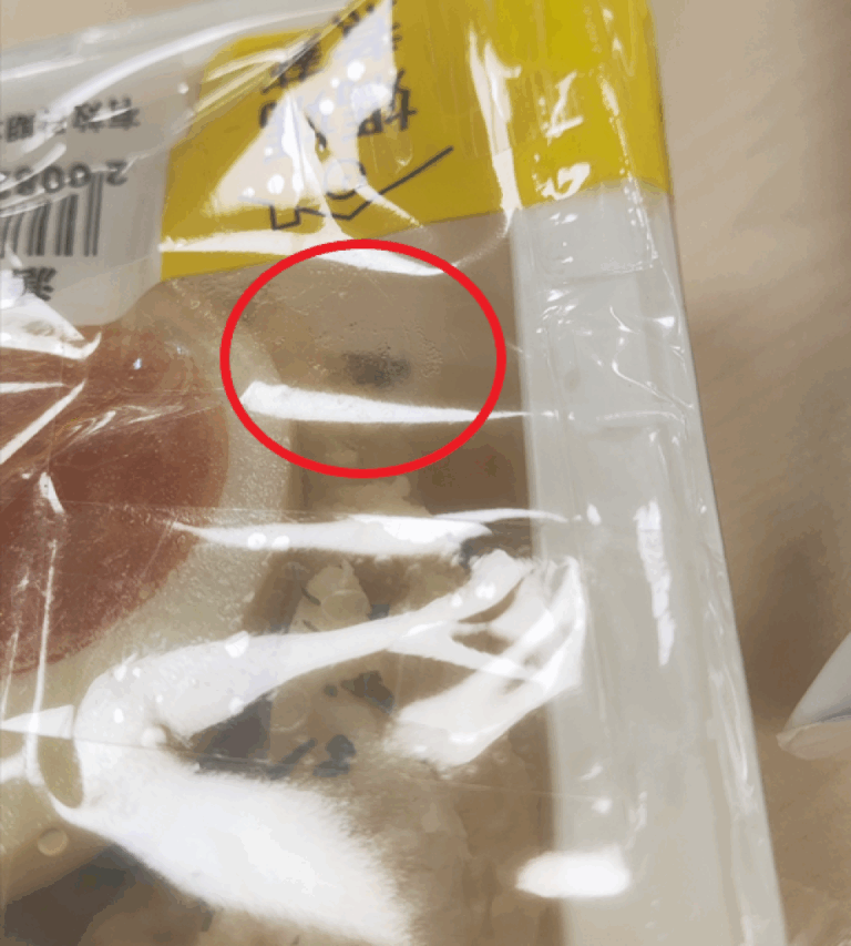 連鎖便利商店沙拉驚見活體小蛾(紅圈處) …