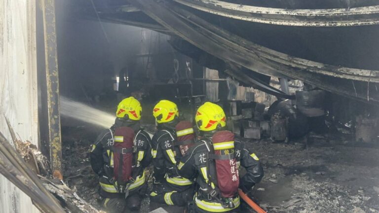 消防隊員前往失火的鐵皮烤漆廠灌救。翻攝…