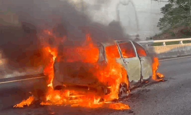 國道4號火燒車,整輛自小客車被烈焰吞噬。…