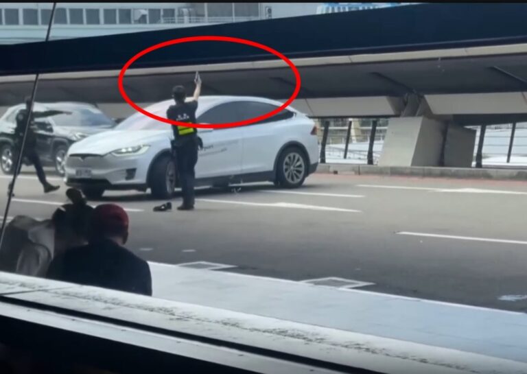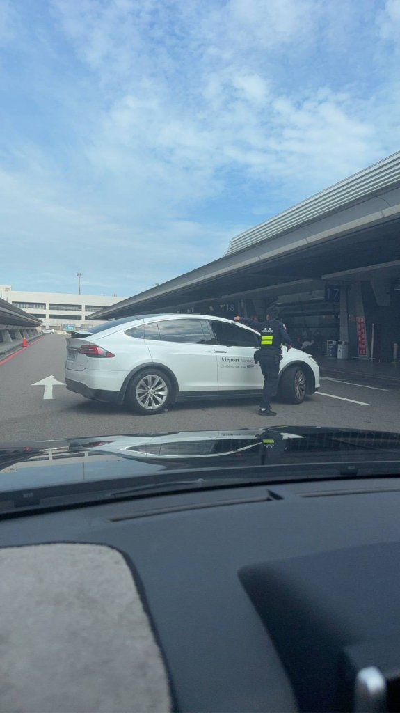 桃園機場驚魂!白色特斯拉拒檢暴衝 警連開…