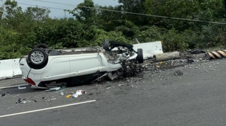 自小客猛撞翻覆(圖/翻攝自 記者爆料網LI…