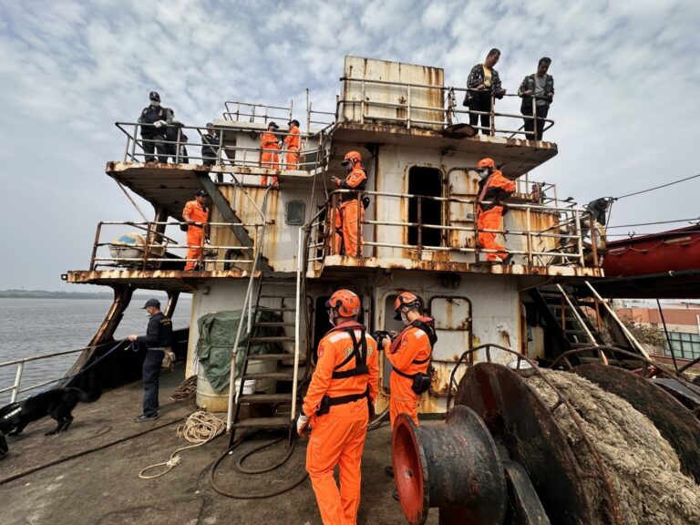 ▲竹市特搜人員進行災害現場救援實兵演練。…