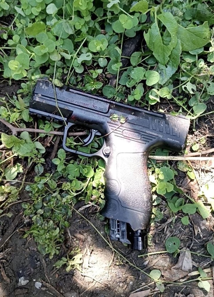 丟包現場留下的瓦斯槍。翻攝畫面 【賴傳…