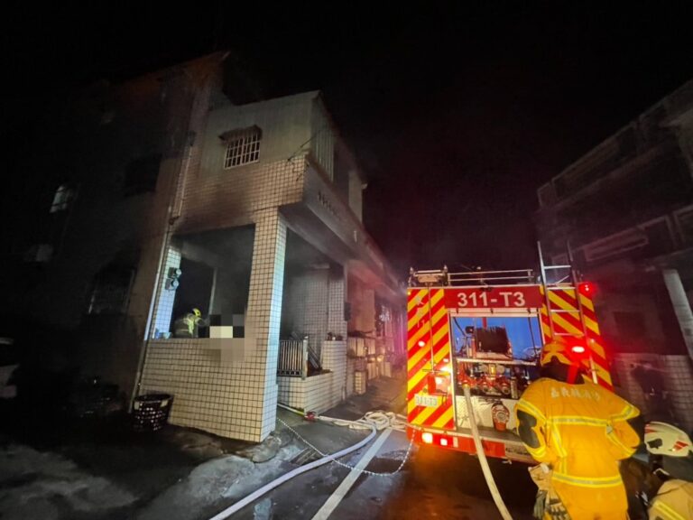 東石鄉民宅火警消防隊員前往灌救。翻攝畫…
