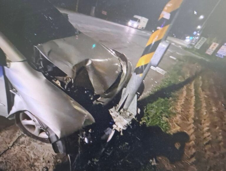 中壢酒駕自小客車撞電線桿。翻攝畫面 【…