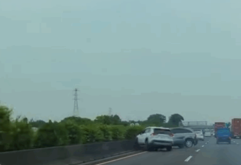 遭小貨車撞擊銀灰色休旅車失控,撞擊行駛…