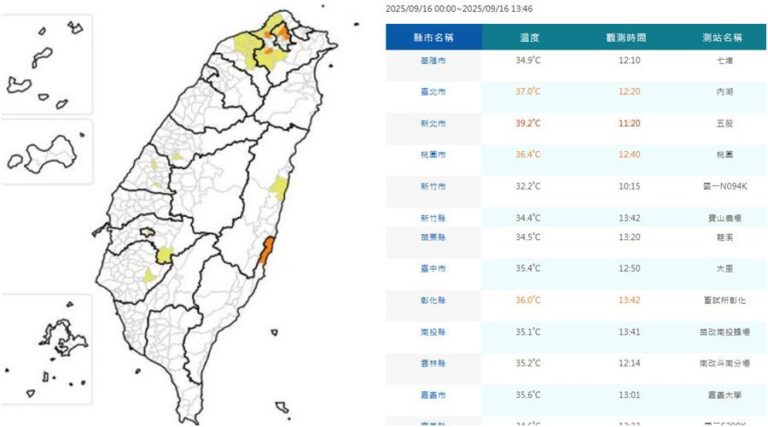 生活中心∕綜合報導 今天9月16日各地天氣高…