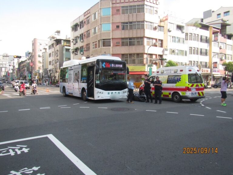 (75 歲翁闖紅燈遭公車擊落送醫。圖/ 記…