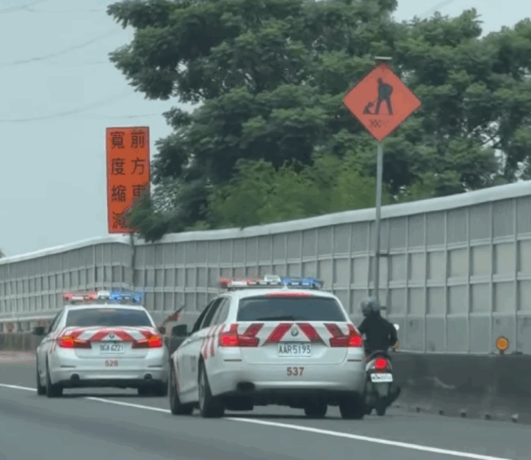 國道警察攔截騎上國道的機車女騎士。翻攝…