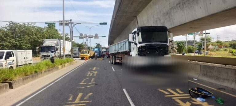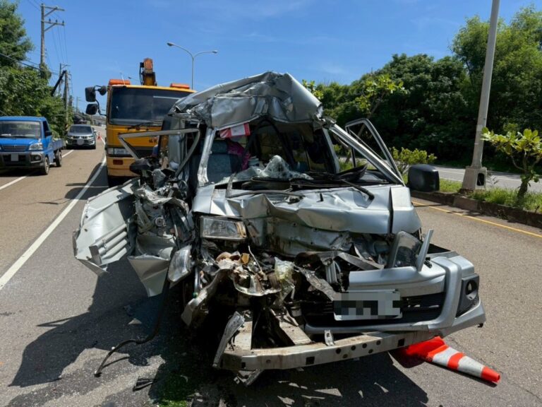 廂型車追撞大貨車車頭撞爛。翻攝畫面 【…