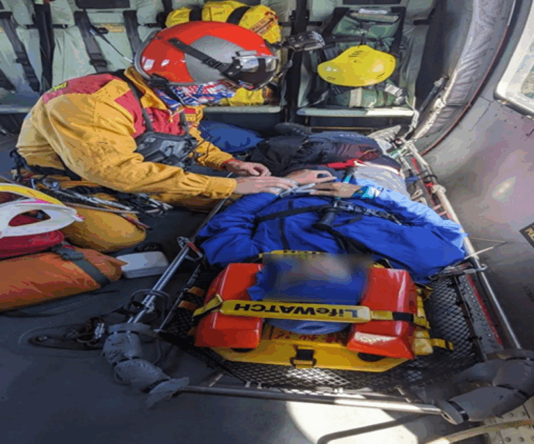 受傷登山客救上直升機。翻攝畫面 【賴傳…