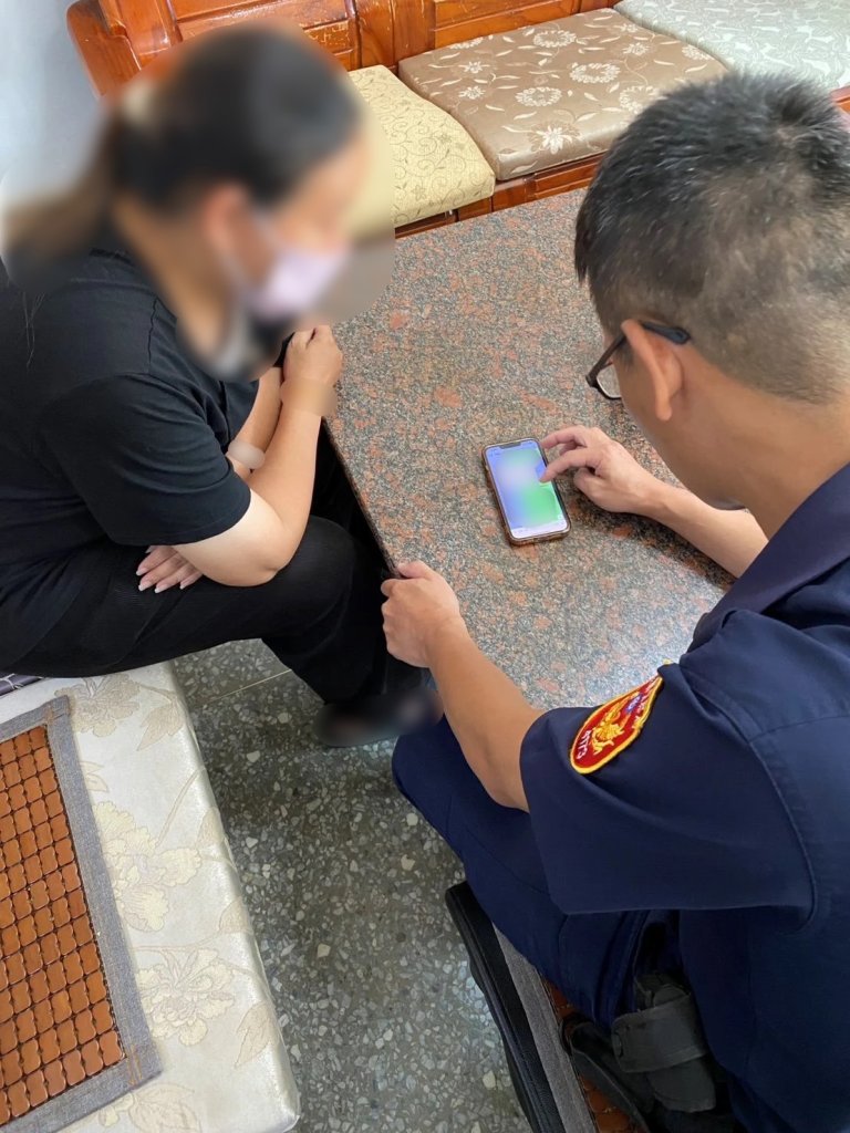 員警檢視民眾遭詐騙的手機訊息。翻攝畫…