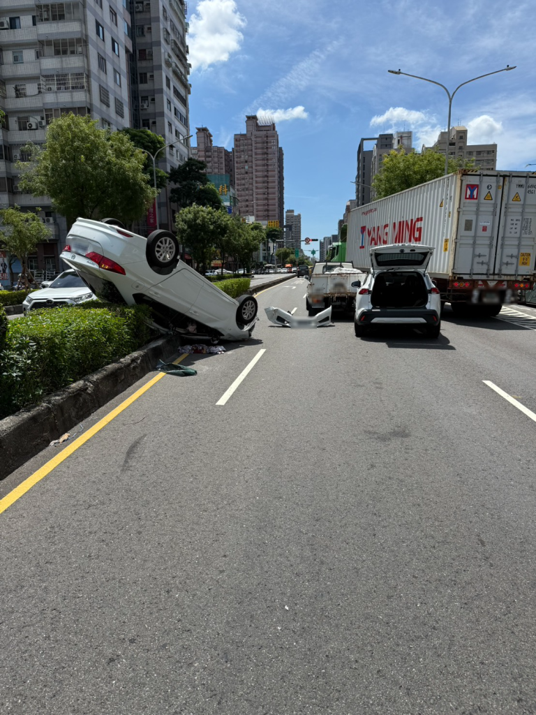 高雄民族路驚魂!白色轎車翻覆四輪朝天 三…