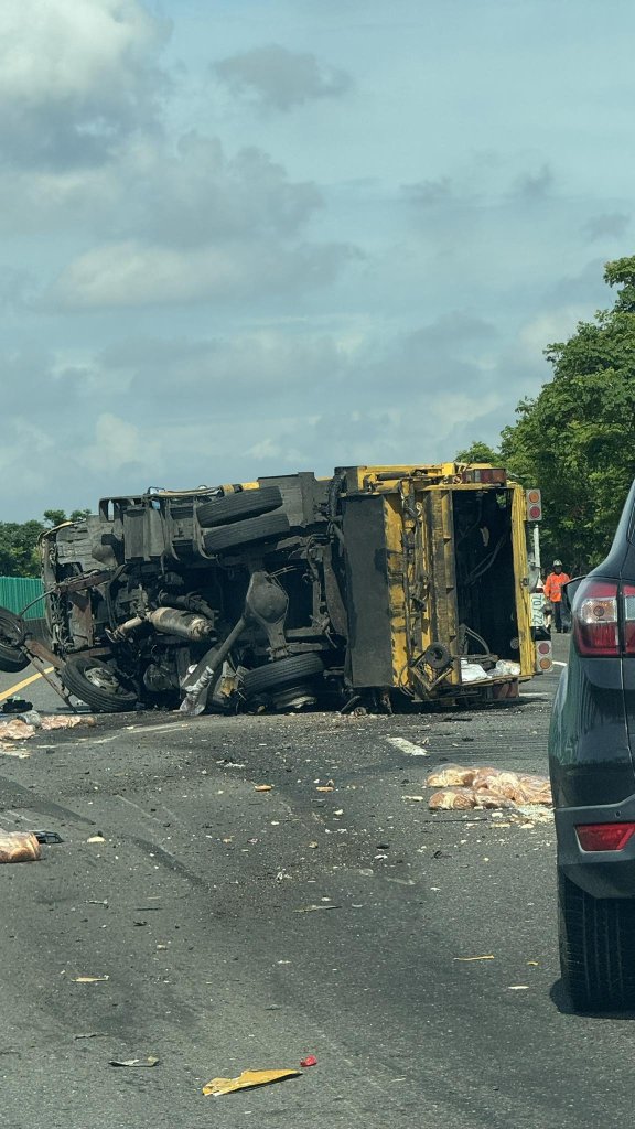 台82線垃圾車撞緩撞車翻覆。翻攝「嘉義綠…