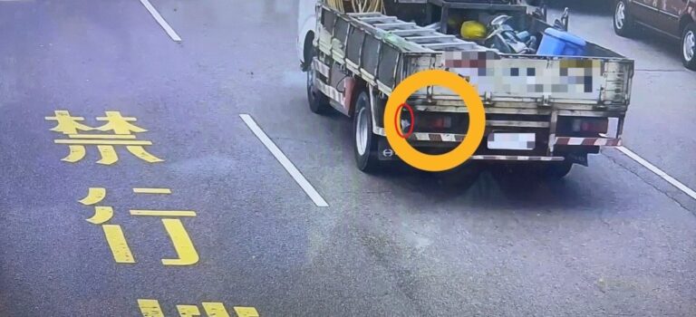 螺絲釘(紅圈處)從貨車掉落造成車輛中釘…