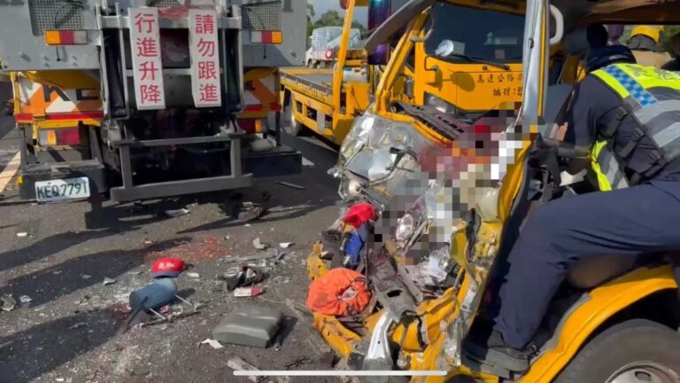 車頭猛撞全爛,上面還留下大片血跡(圖/…