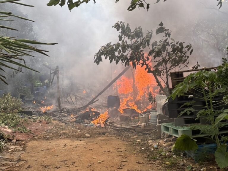 ▲林口一處墓地內的工寮火警。(翻攝畫面)…