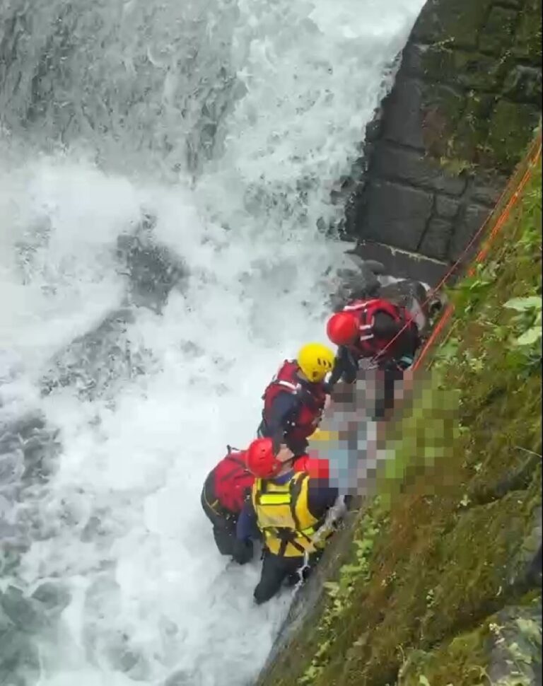 消防隊員尋獲溺水婦人。翻攝畫面 【賴傳…
