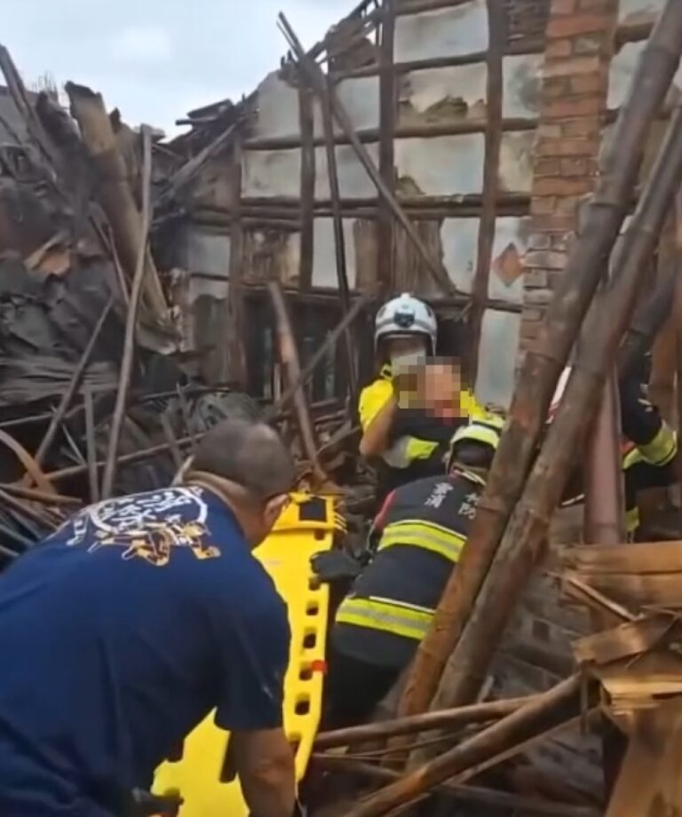 雲林斗南老屋因連日豪雨倒塌,消防隊員救…