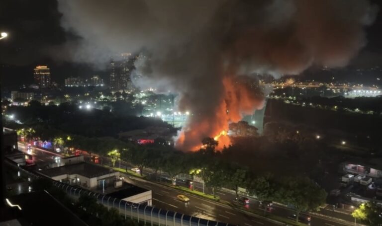 ( 新店環河路鐵皮工廠竄惡火。圖/記者:陳…