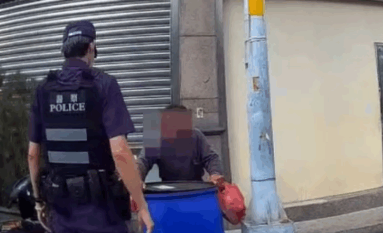 台中員警巡邏發現遊民吃餿水。翻攝畫面 …