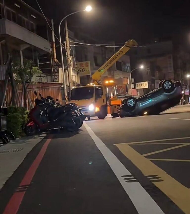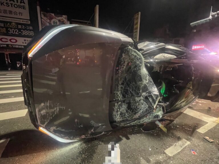 桃園平鎮自小客車自撞停路邊車輛翻覆。翻…