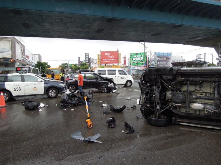 台中北屯3車相撞現場一片凌亂。翻攝畫面 …