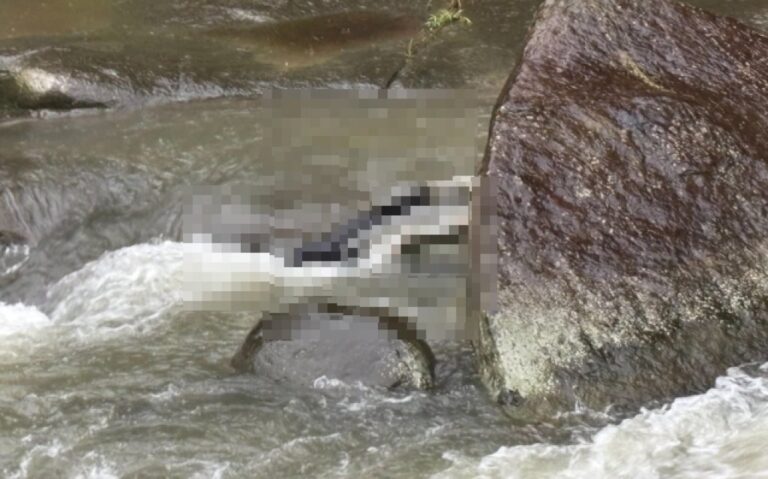 消防隊員溪中發現溺斃者。翻攝畫面 【賴…