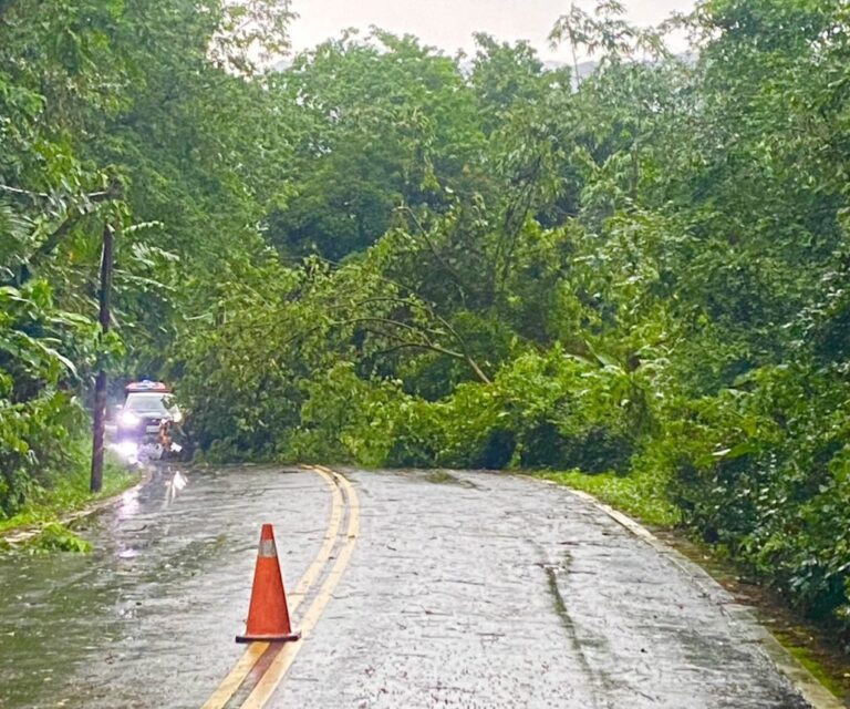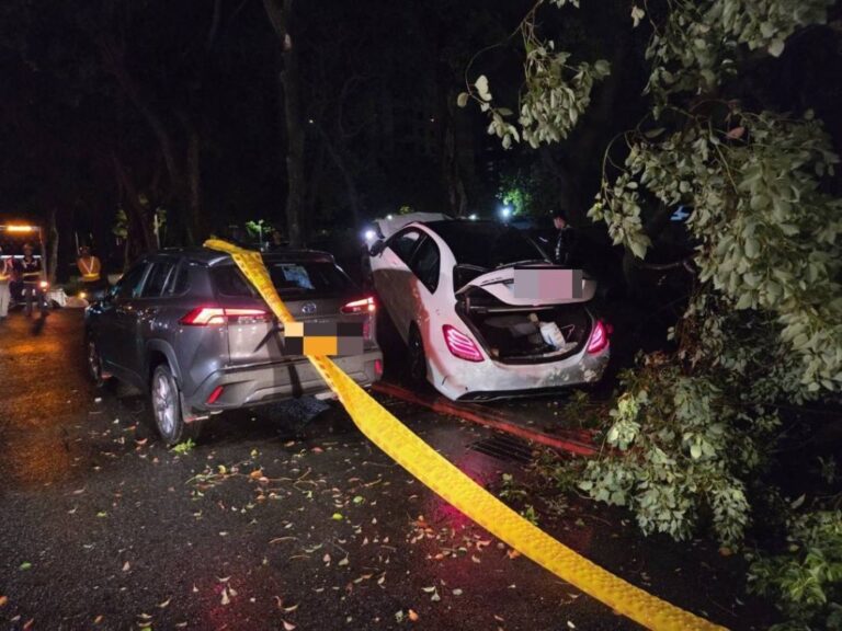 苗栗124縣道路樹倒塌雙向交通受阻。翻攝畫…