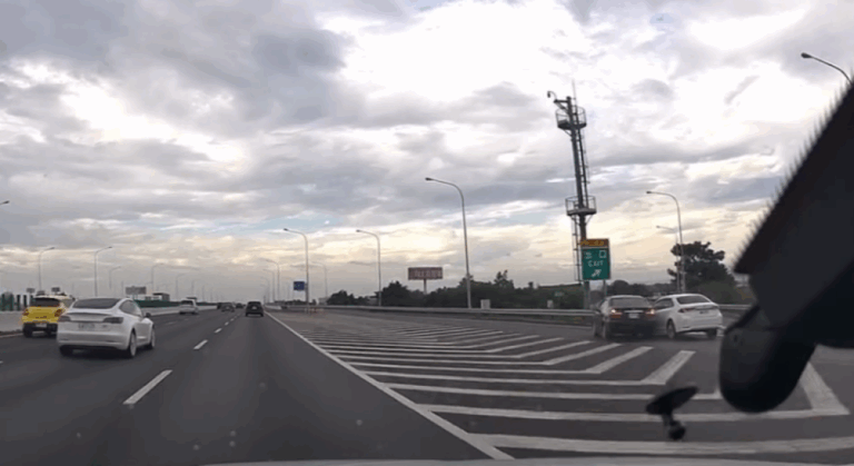 黑色自小客車從中線車道鬼切至匝道出口處…