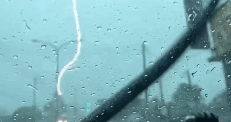 民眾上傳彰化縣北斗鎮閃電的畫面。翻攝畫…