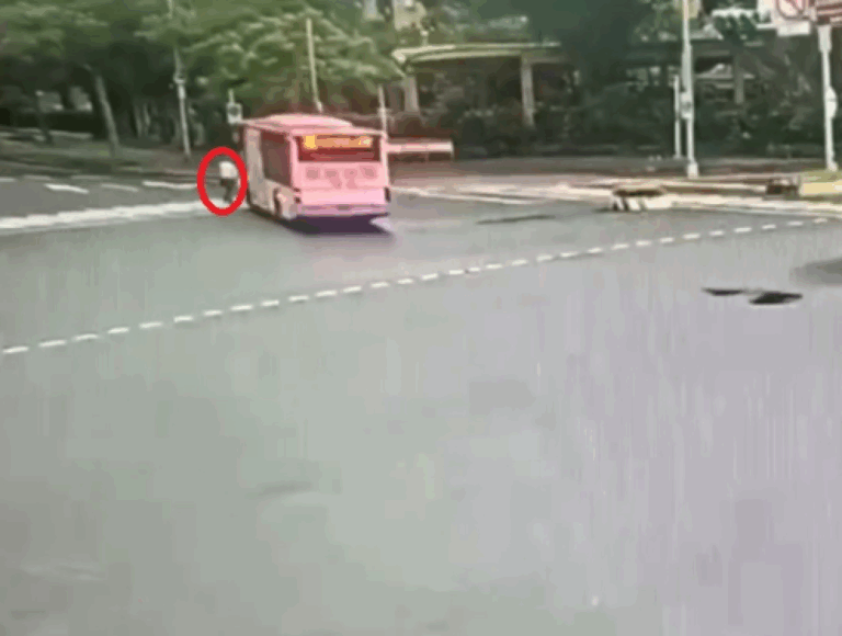 周姓醫師(紅圈處)走人行道過馬路被公車…