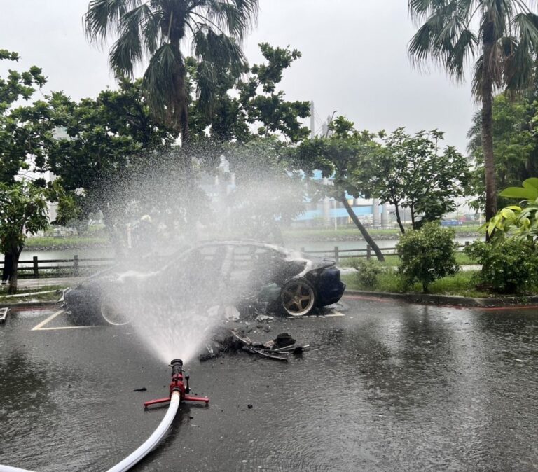 (保時捷電動車剛發動就自燃,燒剩骨架。…