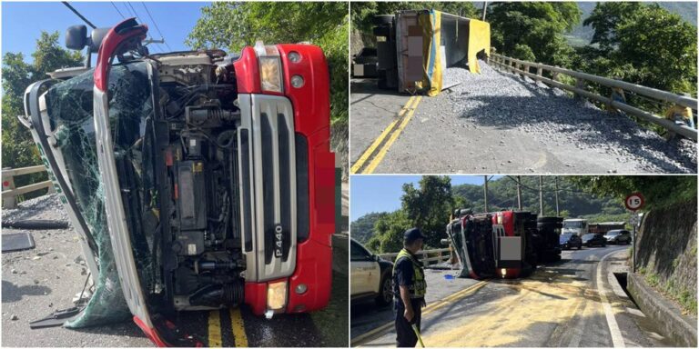 影音/驚險一瞬間!蘇花台九線砂石車失控側翻 影響交通逾5小時