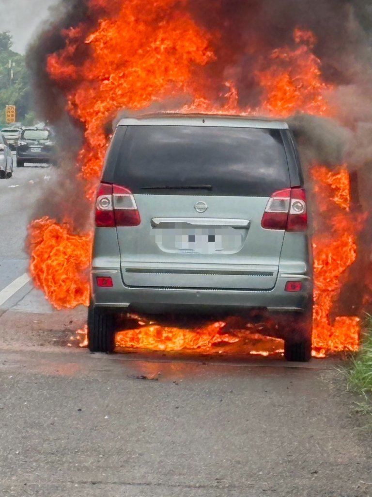 國道10號燕巢路段火燒車火勢兇猛。翻攝畫…