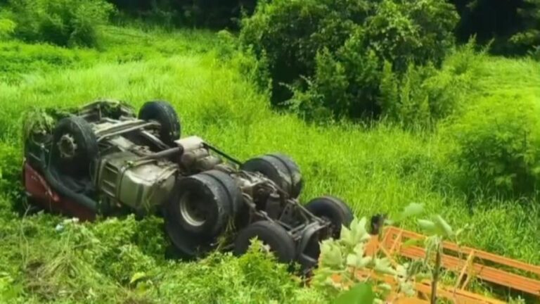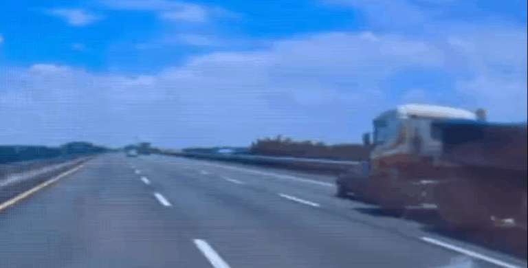 國道1號拖板車翻覆邊坡。翻攝畫面 【賴…