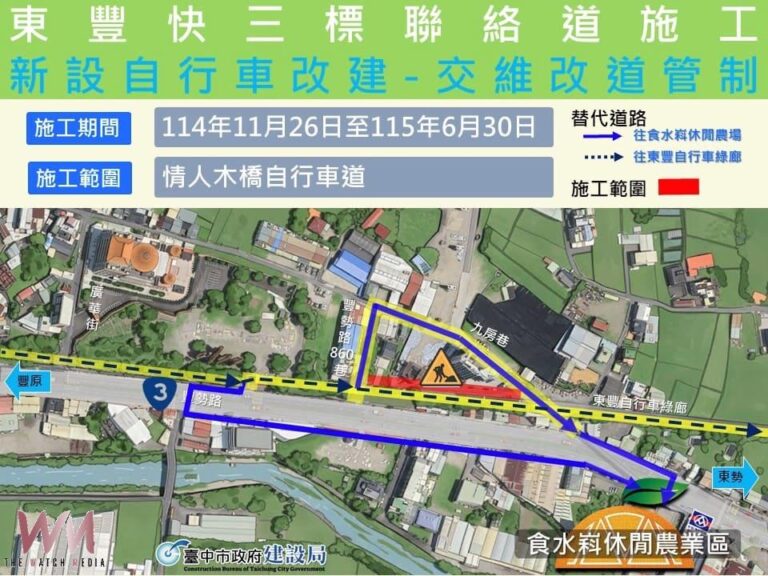 東豐快持續邁進跨越台3線 石岡豐勢路及東豐鐵馬道局部改道管制